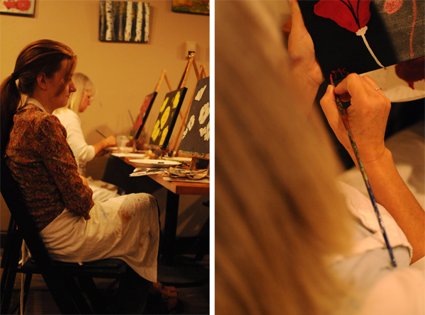 They lead you in creating a specific painting, but encourage you to do whatever you want if you are inspired to take your art in a different direction. The three of us stuck to their example, but tweaked it a bit to our own preferences.
