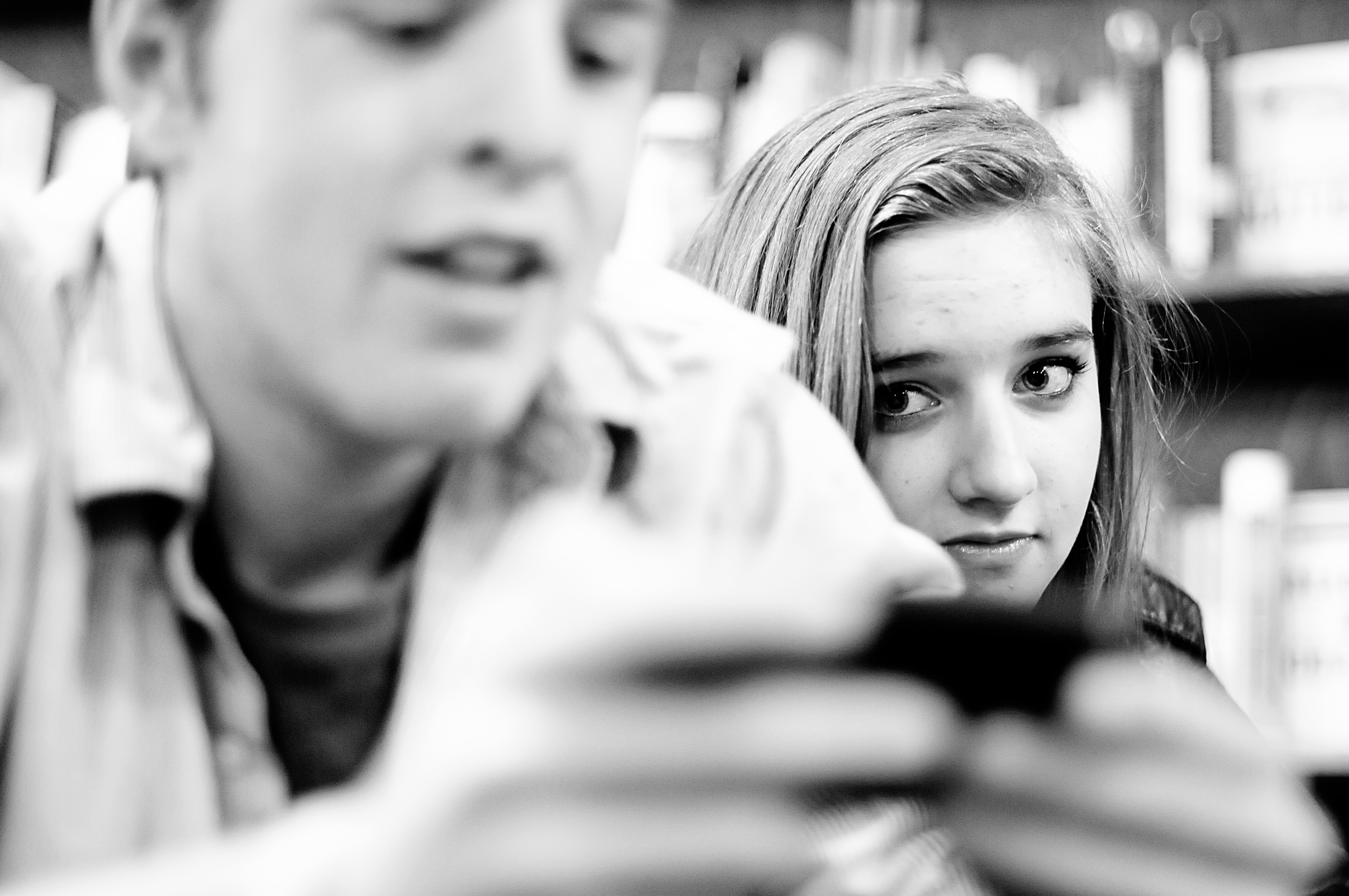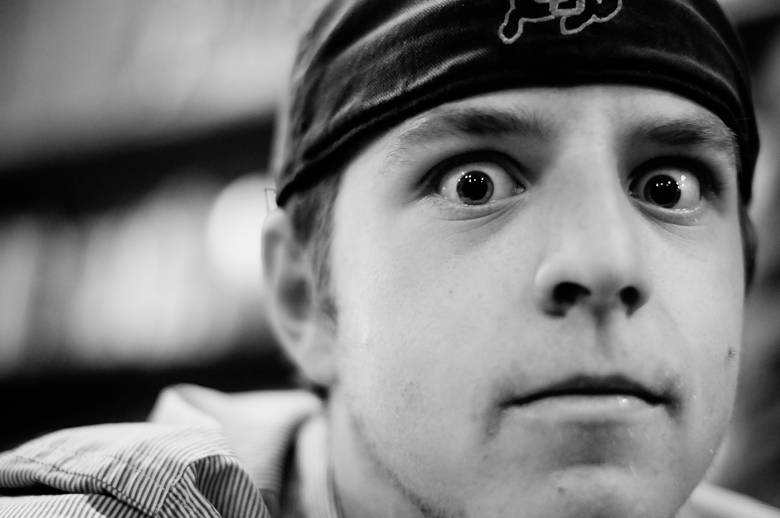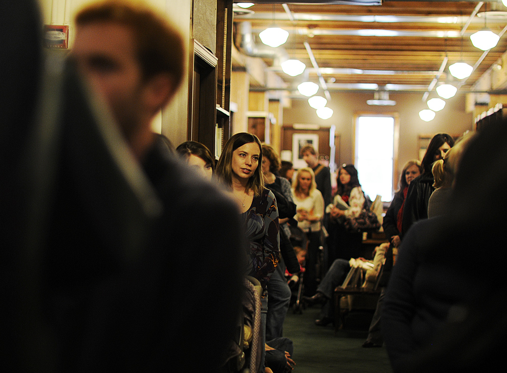 This is the face of a man surrounded by a gaggle of girls waiting to hear a beloved blogger talk about her newest book.