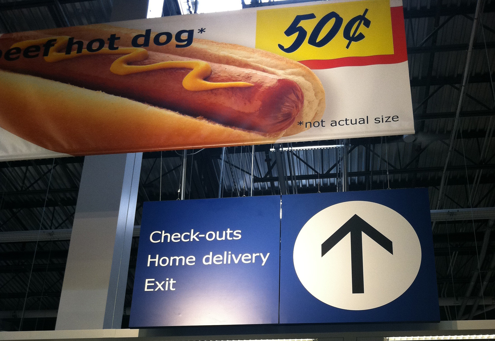 The sign above comes to you care of the new, giant IKEA here in Colorado. That whole store and its ability to pull you into its orbit due to sheer size is for another blog post. For now, know this: you cannot get a hot dog the size of about six of me stacked end to end for 50 cents.