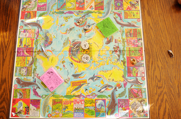 I’m very proud to report that we saved all but one whale in this team-building, environmentally conscious board game. I’m very sad to report that the one whale we lost was Funny Face (seen above). I’m very devastated to report that it was my fault we lost Funny Face.