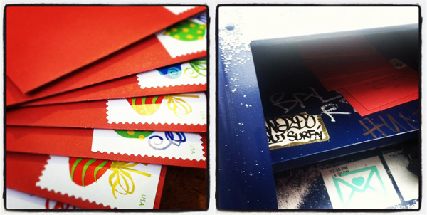 (4) Address, stamp, curlicue and decorate your envelopes with as much festive glory as you can muster.